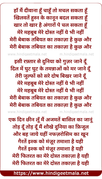 mere mahbub mere dost nahi ye bhi nahi