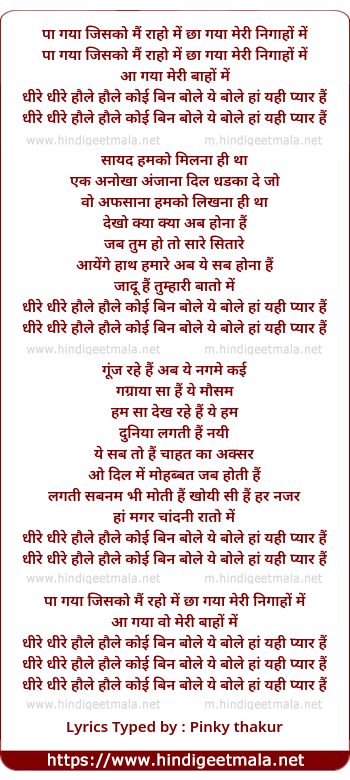 dhire dhire hole hole koi bin bole ye bole ha yahi pyar hai