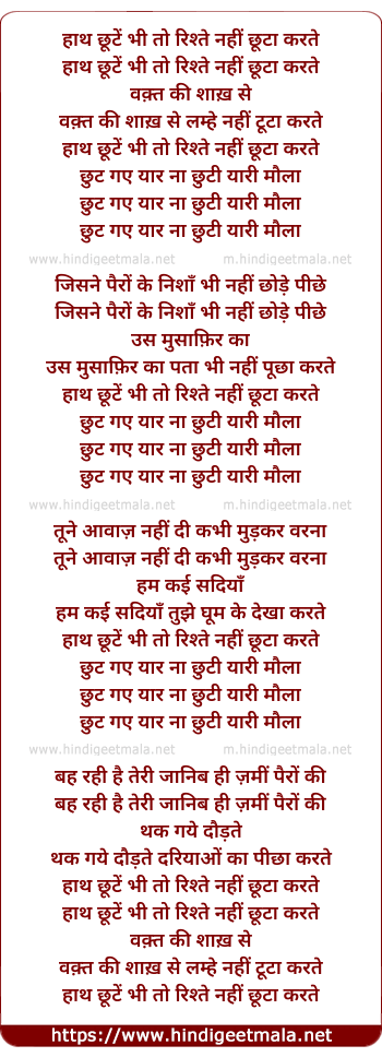 Lyrics of Hanth Chute Bhi To - हाथ छूटें भी तो