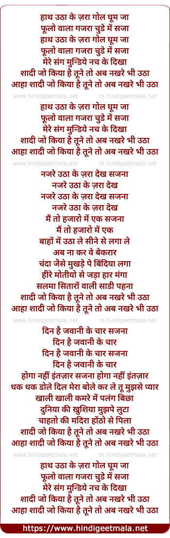 Lyrics of Haath Utha Ke Jara Gol Ghum Ja (Nakhre) - हाथ उठा के ज़रा गोल घूम जा