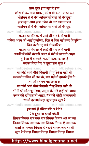 Lyrics of Haye Luta Chhora Vo Kar Gaya Ghayal - हाय लूटा छोरा वो कर गया घायल