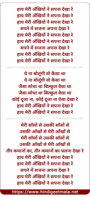 Lyrics of Haay Meree Ankhiyo Ne Sapana Dekha Re - हाय मेरी अँखियों ने सपना देखा रे