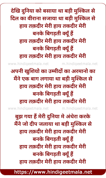 Lyrics of Haay Taqdeer Meri Ban Ban Ke - हाय तकदीर मेरी बन बन के