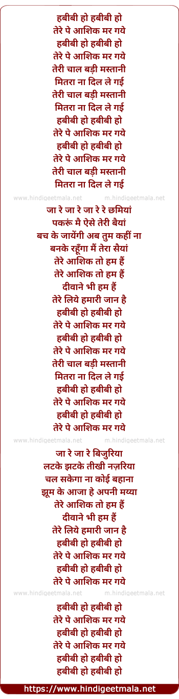 Lyrics of Habibee - हबीबी हो हबीबी हो