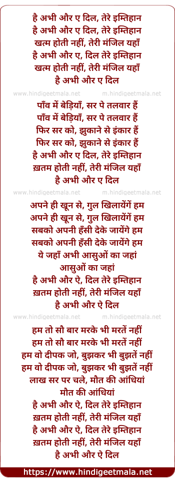 Lyrics of Hai Abhi Aur Ae Dil Tere Imtihan - है अभी और ए दिल तेरे इम्तिहान