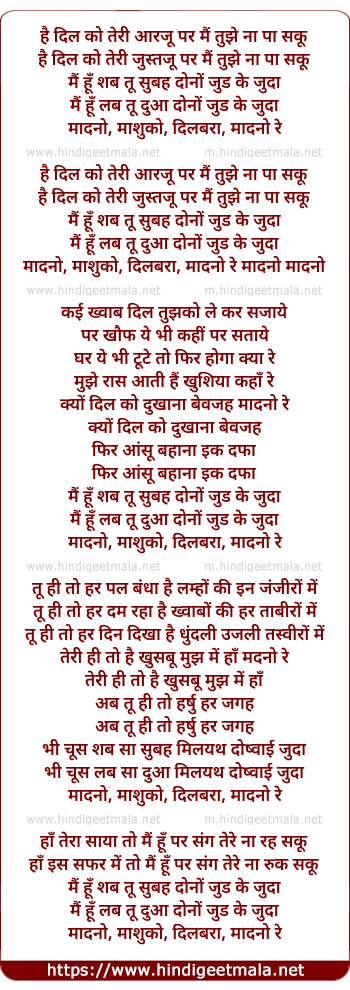 Lyrics of Hai Dil Ko Teri Aarzoo Par Main Tujhe Na Pa Saku - है दिल को तेरी आरजू पर मैं तुझे ना पा सकू