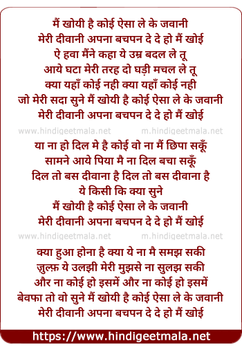 Lyrics of Main Khoyi Hai Aisa Koi Le Ke Jawani - मैं खोयी है कोई ऐसा ले के जवानी