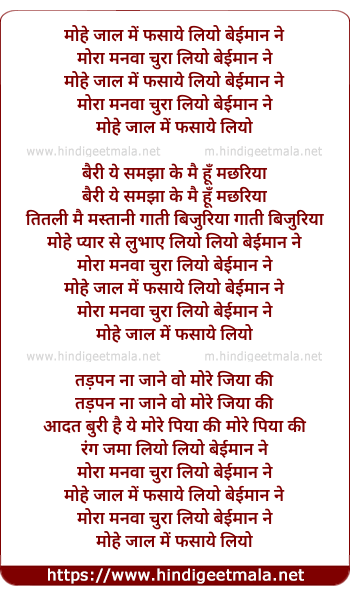 Lyrics of Mohe Jaal Mai Fasaaye Liyo - मोहे जाल में फसाये लियो