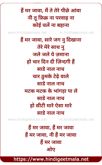 Lyrics of Hai Marjawaa Mai Te Tere Piche Aawa - हैं मरजावा मैं ते तेरे पीछे आंवा