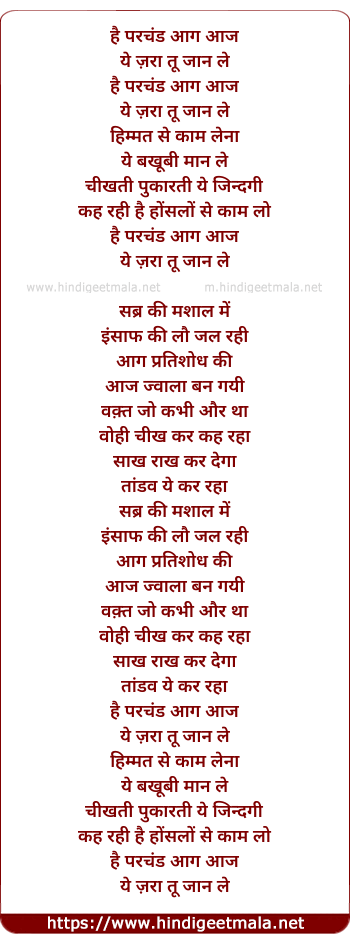 Lyrics of Hai Prachand - है परचंड आग आज