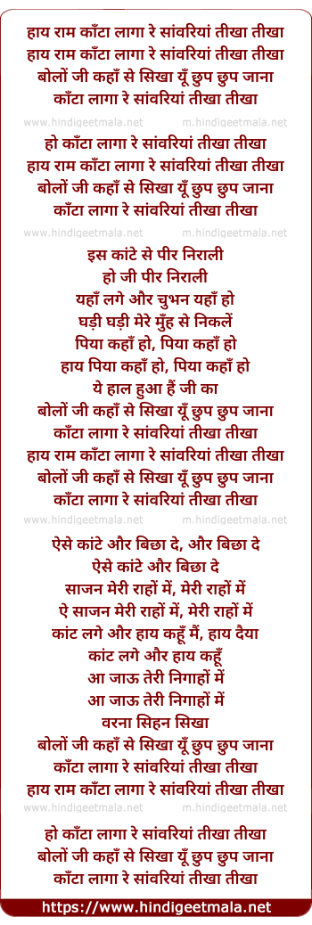 Lyrics of Hai Ram Kaanta Laga Re Saanwariya - हाय राम काँटा लागा रे सांवरियां