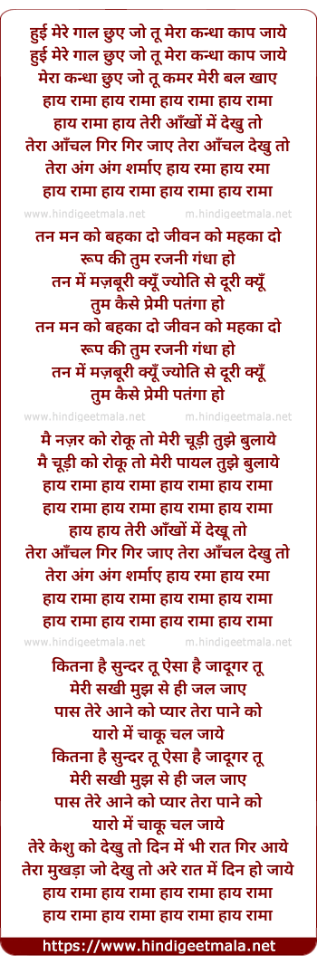 Lyrics of Hai Rama, Mere Gaal Chuye Jo Tu - हुई रामा मेरे गाल छुए जो तू