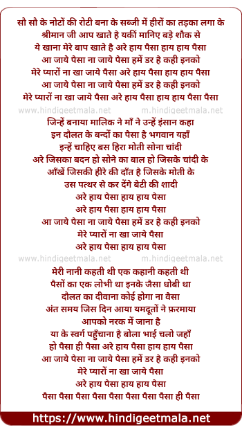 Lyrics of Haay Ye Paisa, Haay Haay Paisa - हाय ये पैसा हाय हाय पैसा