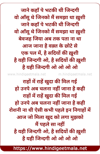 hai yahi jindagi o, hai sadiyo ki khushi
