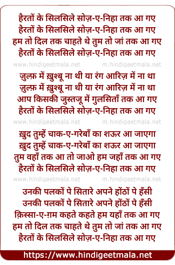 Lyrics of Hairaton Ke Silasile Soz E Nihaa Tak Aa Gaye - हैरतों के सिलसिले सोज़-ए-निहा तक आ गए