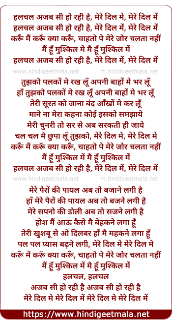 Lyrics of Halchal Ajab Si Ho Rahi Hai Mere Dil Mein - हलचल अजब सी हो रही है मेरे दिल में