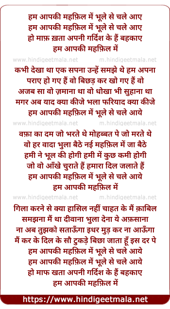 Lyrics of Ham Aapaki Mahafil Mein Bhule Se Chale Aaye - हम आपकी महफ़िल में भूले से चले आए