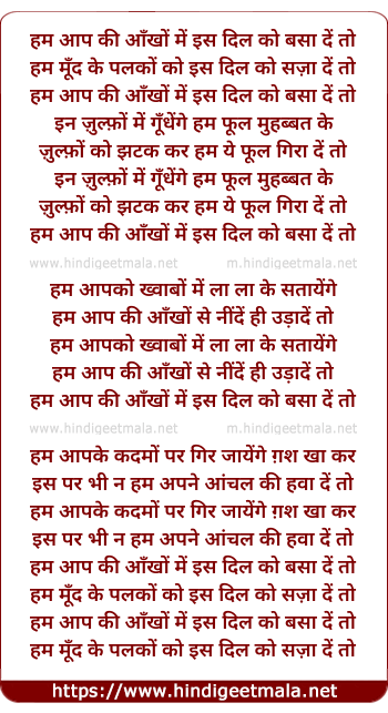 Lyrics of Ham Aapki Aankho Me, Is Dil Ko Basaa De To - हम आप की आँखों में इस दिल को बसा दें तो