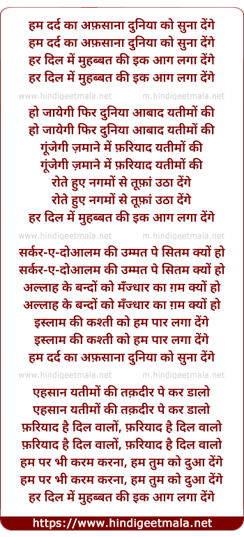 Ham Dard Kaa Afsana Duniya Ko Suna Denge - हम दर्द का अफ़साना दुनिया को सुना देंगे