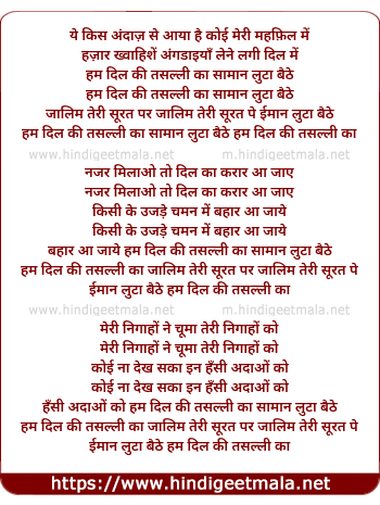 Lyrics of Ham Dil Ki Tassalli Ka Samaan Luta Baithe - हम दिल की तसल्ली का सामान लुटा बैठे