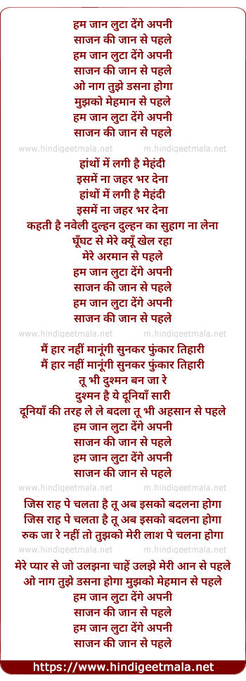 Lyrics of Ham Jaan Luta Denge - हम जान लुटा देंगे
