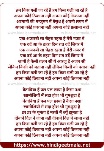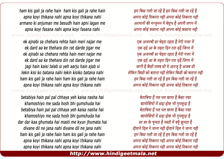 Lyrics of Ham Kis Gali Ja Rahe Hai - हम किस गली जा रहें है हम किस गली जा रहें है