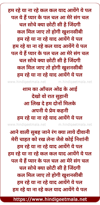 Lyrics of Ham Rahe Ya Naa Rahe Kal - हम रहे या ना रहे कल