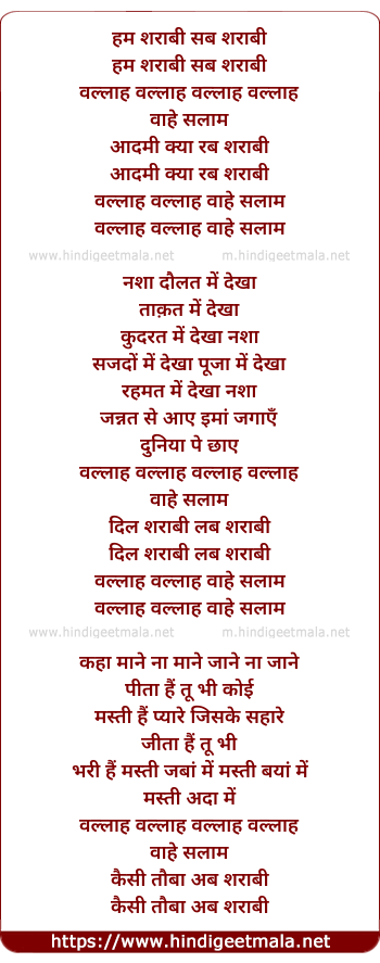 Lyrics of Ham Sharabi Sab Sharabi - हम शराबी सब शराबी