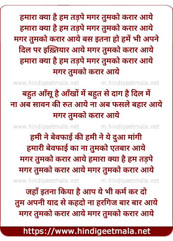 magar tumko karar aaye hamara kya hai hum tadpe