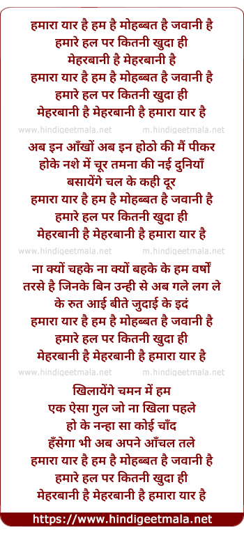 Lyrics of Hamara Yaar Hai Hum Hai - हमारा यार है हम है