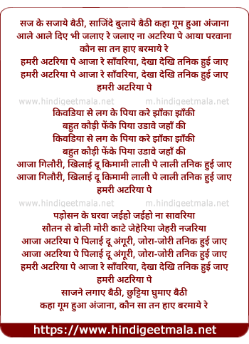 Lyrics of Hamari Atariya, Tanik Hui Jaaye - हमरी अटरिया, तनिक हुई जाए