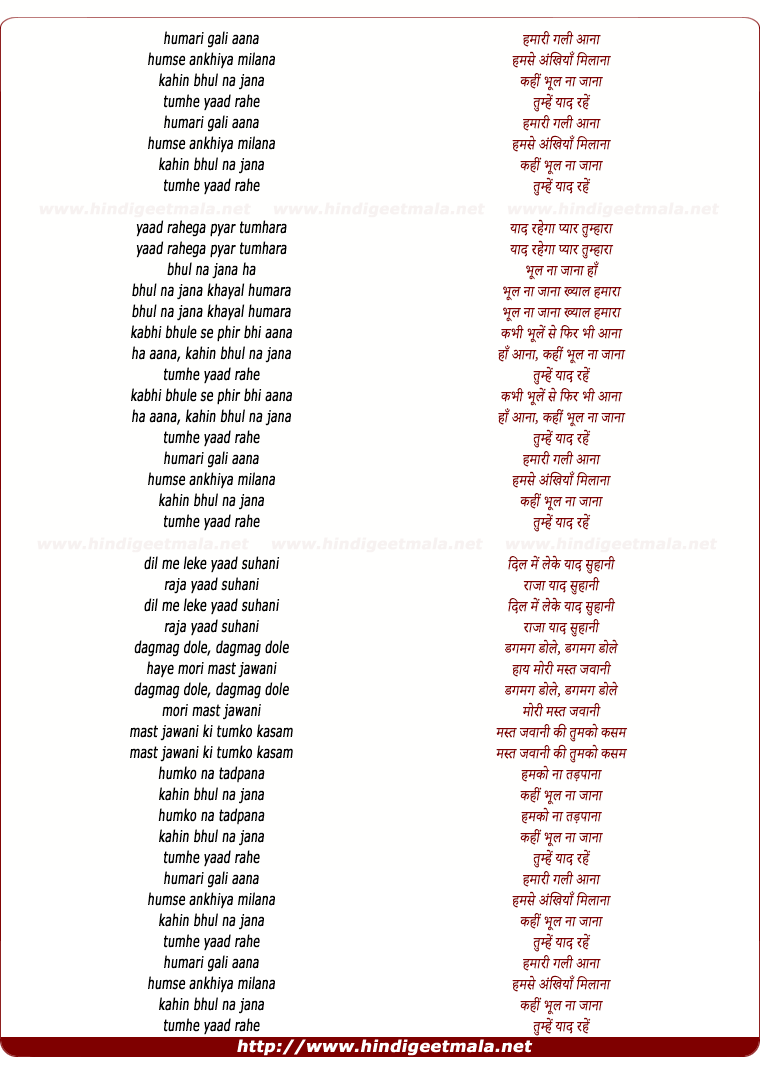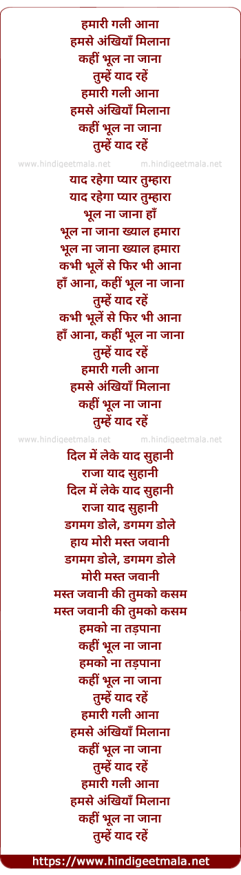 Lyrics of Hamari Gali Aana - हमारी गली आना