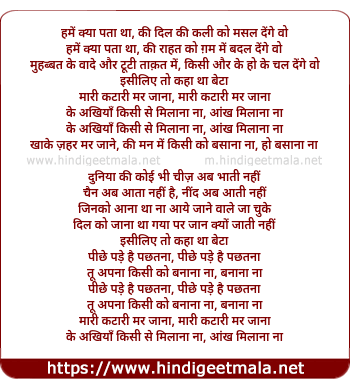 Lyrics of Hame Kya Pata Tha Ki Dil Ki Kali Ko Masl Denge Wo - हमें क्या पता था की दिल की कली को मसल देंगे वो