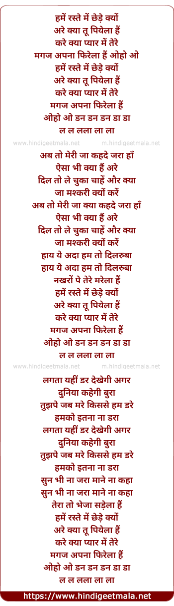 Lyrics of Hame Raste Me Chhede Kyo - हमें रस्ते में छेड़े क्यों
