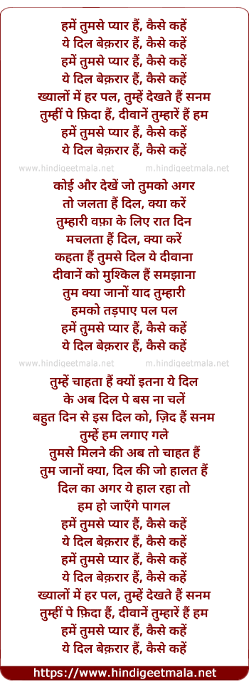 Hame Tumase Pyaar Hai, Kaise Kahe - हमें तुमसे प्यार हैं, कैसे कहें