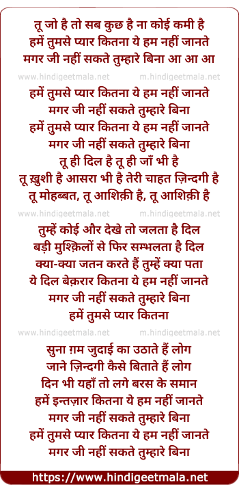 Lyrics of Hame Tumse Pyar Kitna Yeh Ham Nahee Jaanate - हमें तुमसे प्यार कितना ये हम नहीं जानते