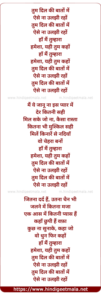 Lyrics of Hameshaa - तुम दिल की बातों में