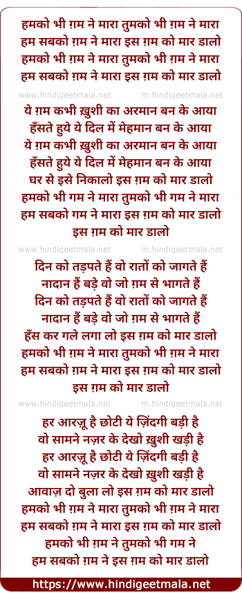 Lyrics of Hamko Bhi Gam Ne Mara - हमको भी गम ने मारा
