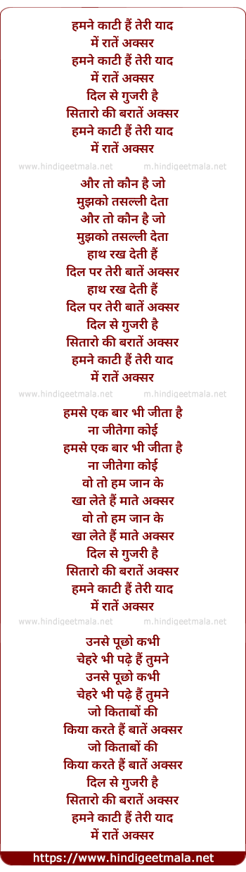 Lyrics of Hamne Kaati Hain Teri Yaad Me - हमने काटी हैं तेरी याद