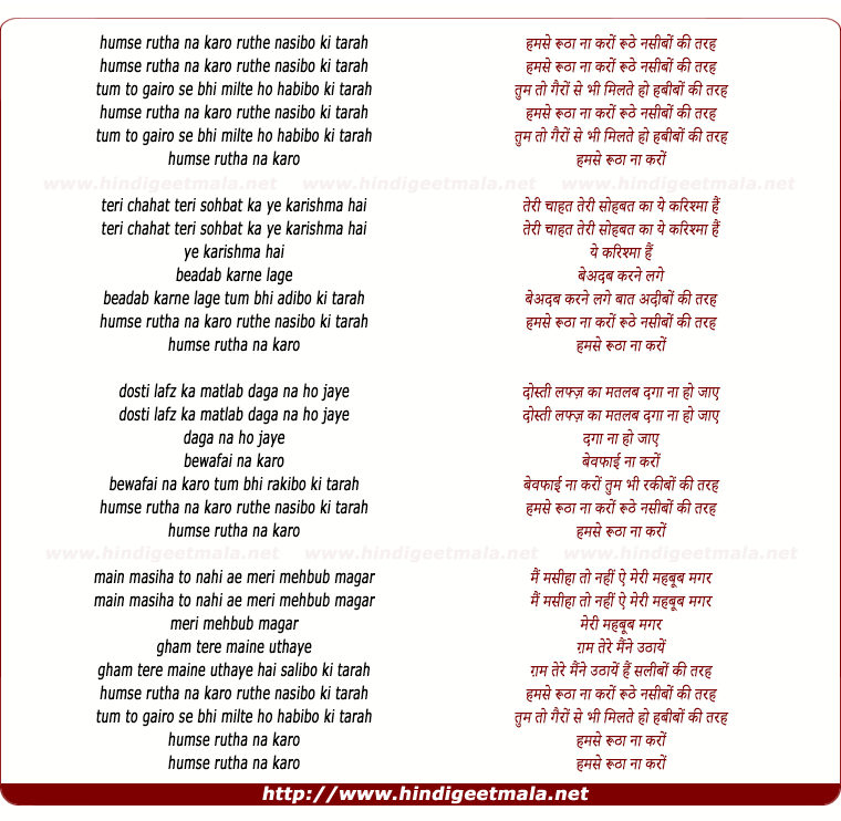 Lyrics of Hamse Rootha Na Karo - हमसे रूठा ना करों