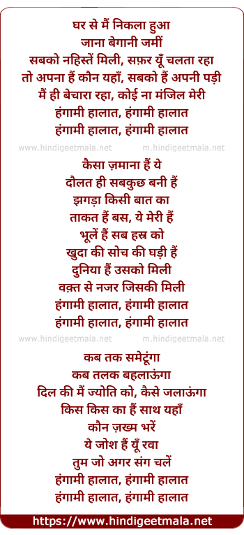 Lyrics of Hangaami Haalaat - घर से मैं निकला हुआ