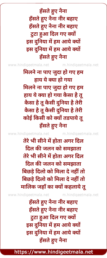 Lyrics of Hanste Huye Nainaa Nir Bahaye - हँसते हुए नैना नीर बहाये