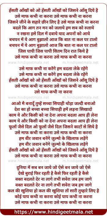 Lyrics of Hansti Aankho Ko Jisne Aansu Diye - हँसती आँखों को जिसने आँसू दिये है