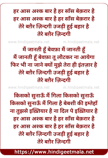 Lyrics of Har Aas Ashq Baar Hai Har Sans Bekarar Hai - हर आस अश्क बार है हर साँस बेक़रार है