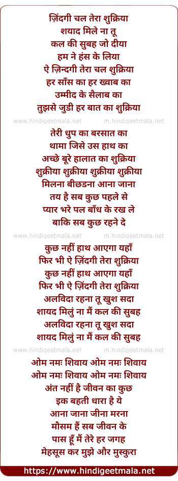 Lyrics of Har Baat Kaa Shukriya - हर बात का शुक्रिया