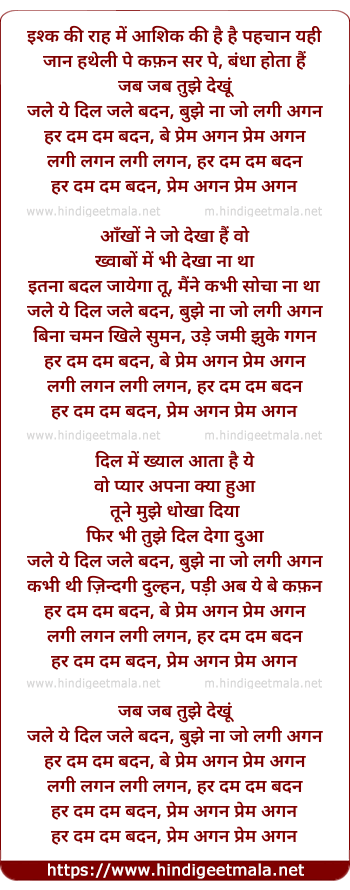 Lyrics of Ishq Ki Raah Me Aashiq Ki ( Har Dam Dam Bedam) - इश्क की राह में आशिक की (हर दम दम बेदम )