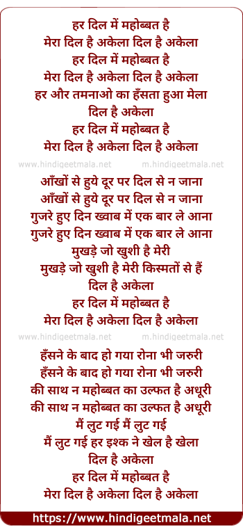 mera dil hai akela dil hai akela
