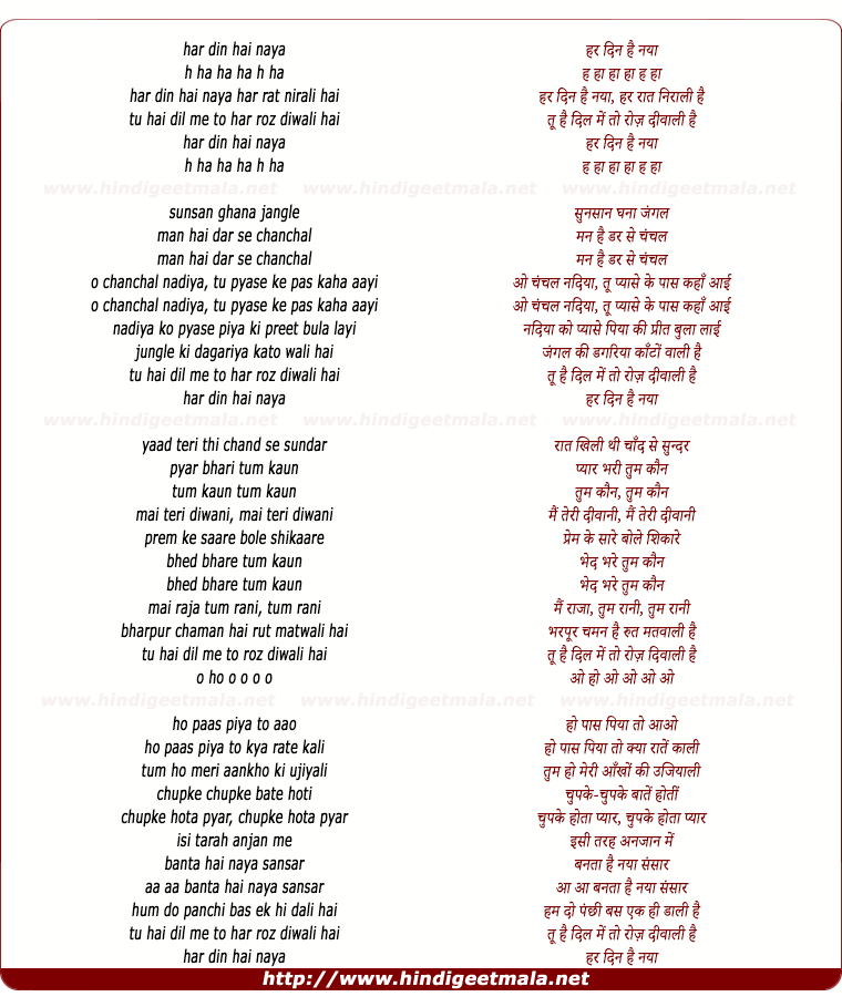 Lyrics of Har Din Hai Naya Har Rat Nirali Hai - हर दिन है नया