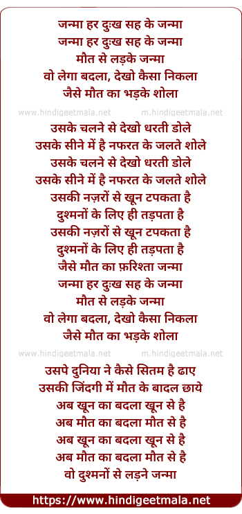 Lyrics of Har Dukh Sehke Janma - जन्मा हर दुःख सह के जन्मा