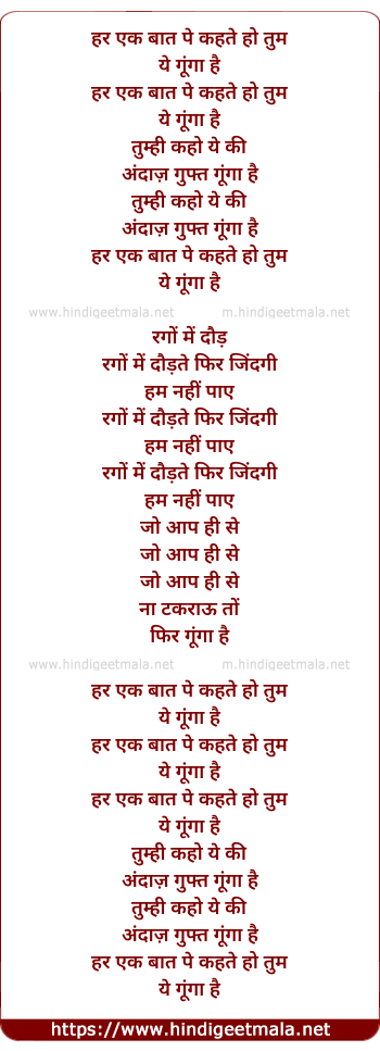 Lyrics of Har Ek Baat - हर एक बात पे कहते हो तुम